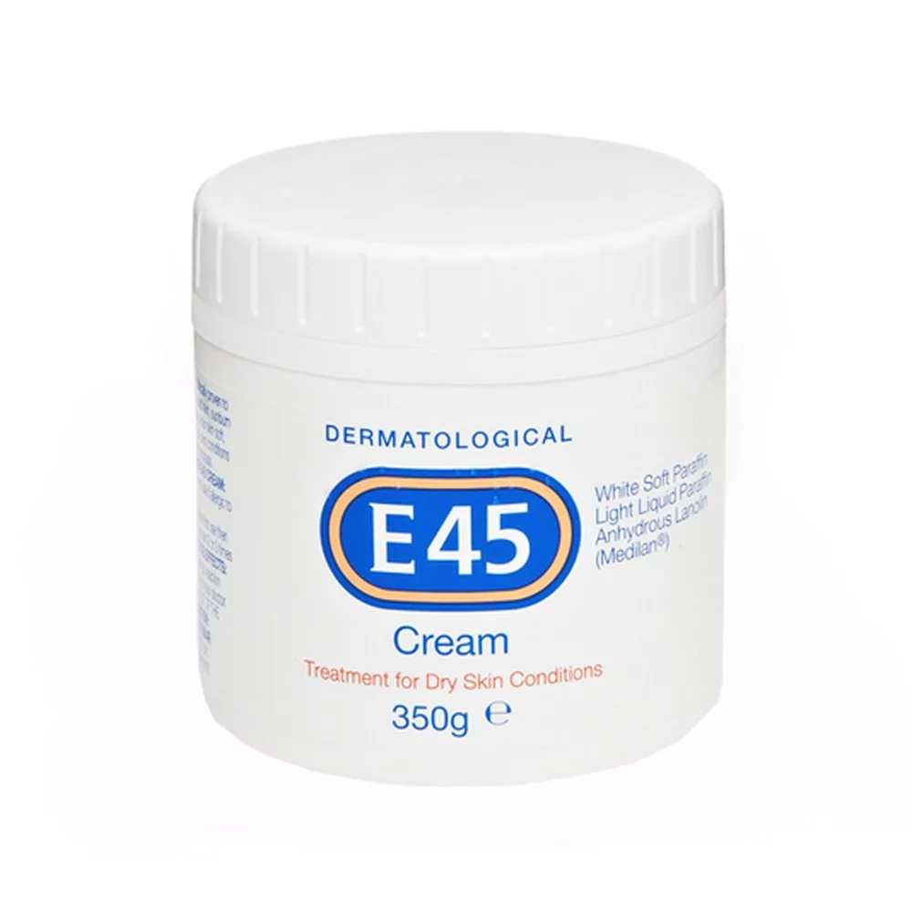 The E45 Moisturizing Cream 350g is a dermatologically tested emollient cream designed to hydrate and soothe dry skin conditions, including eczema, dermatitis, and psoriasis2. It is non-greasy, quickly absorbed, and fragrance-free, making it suitable for sensitive skin.